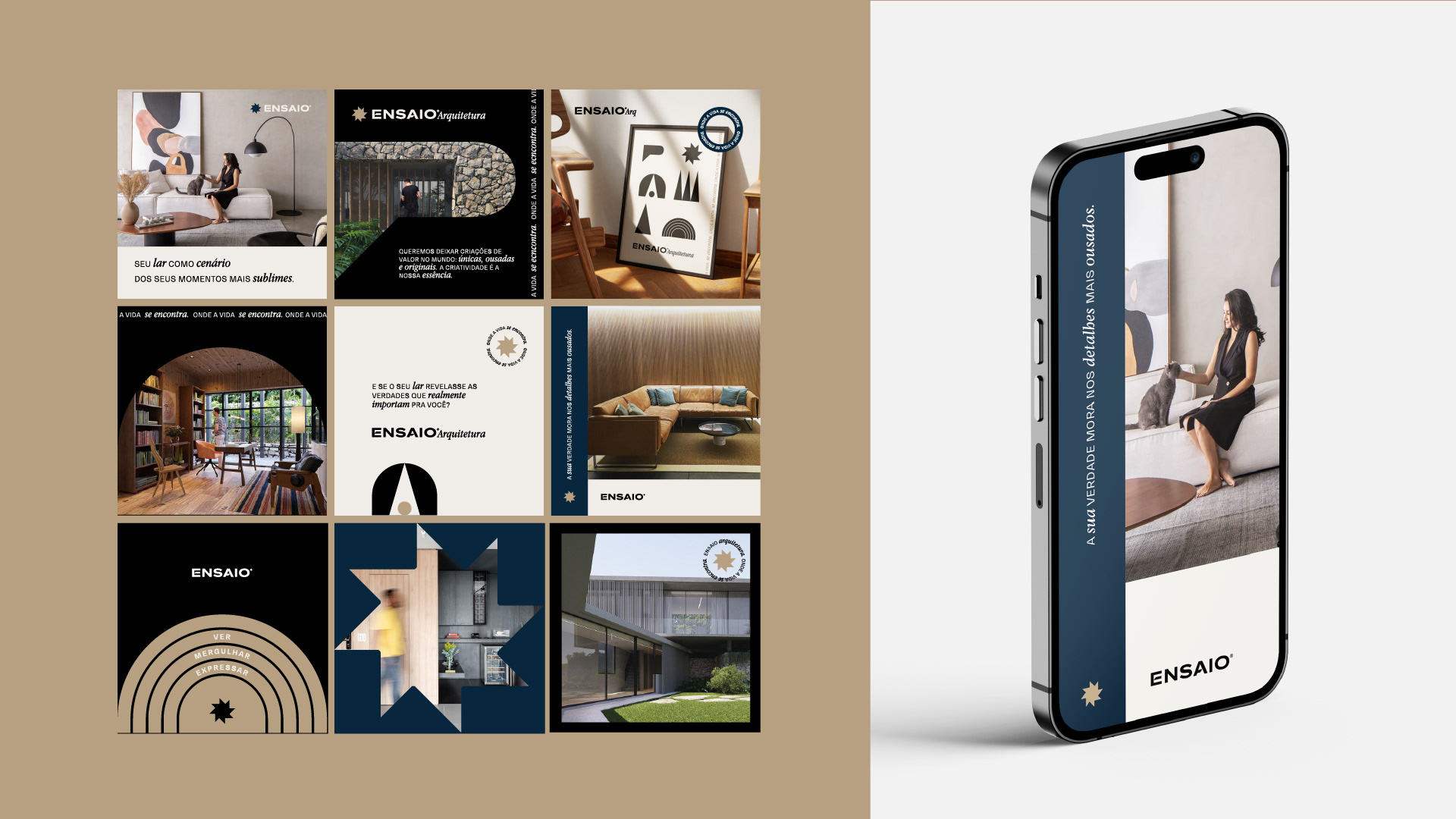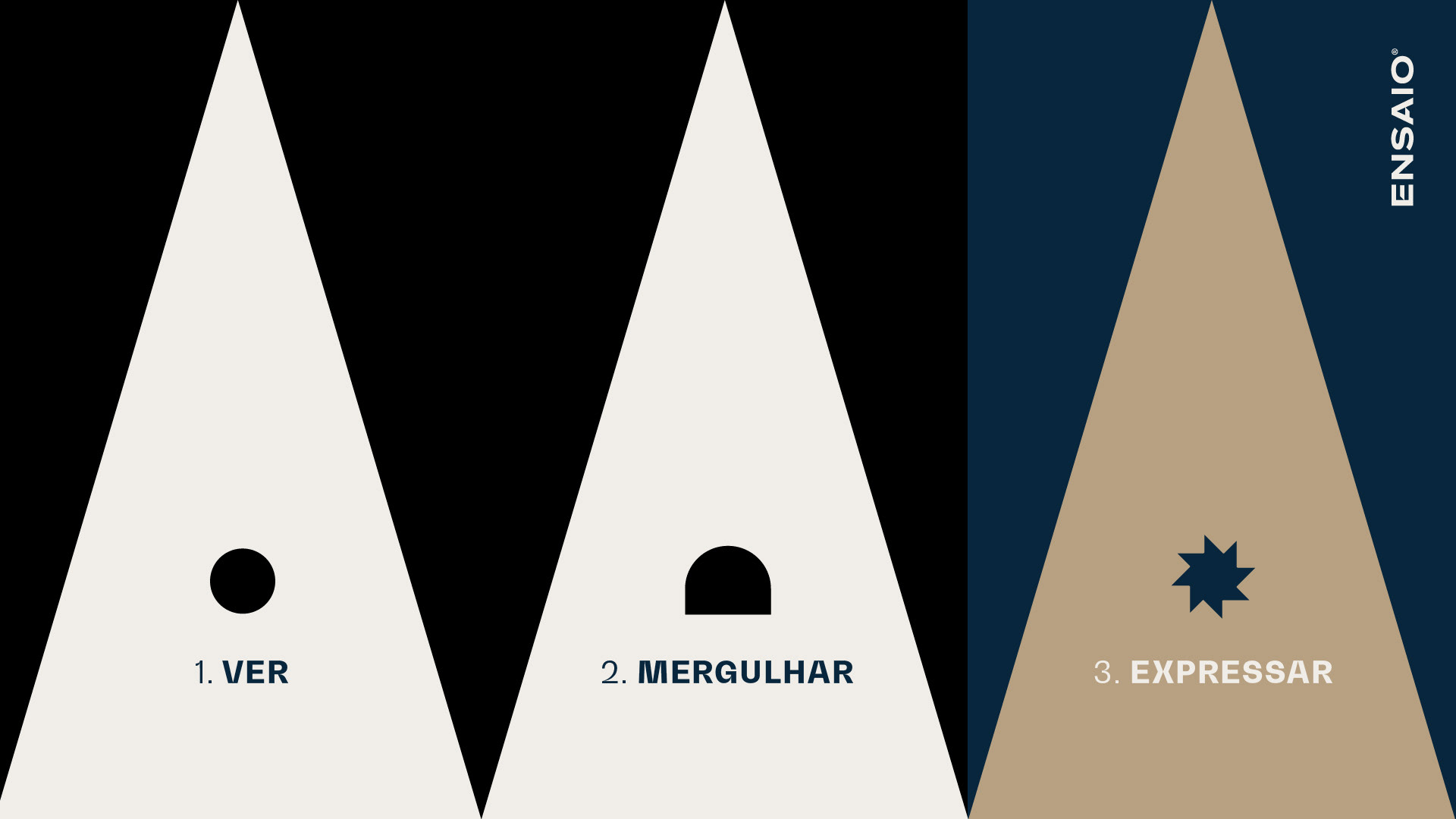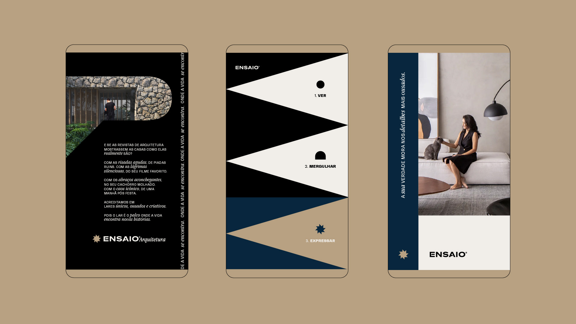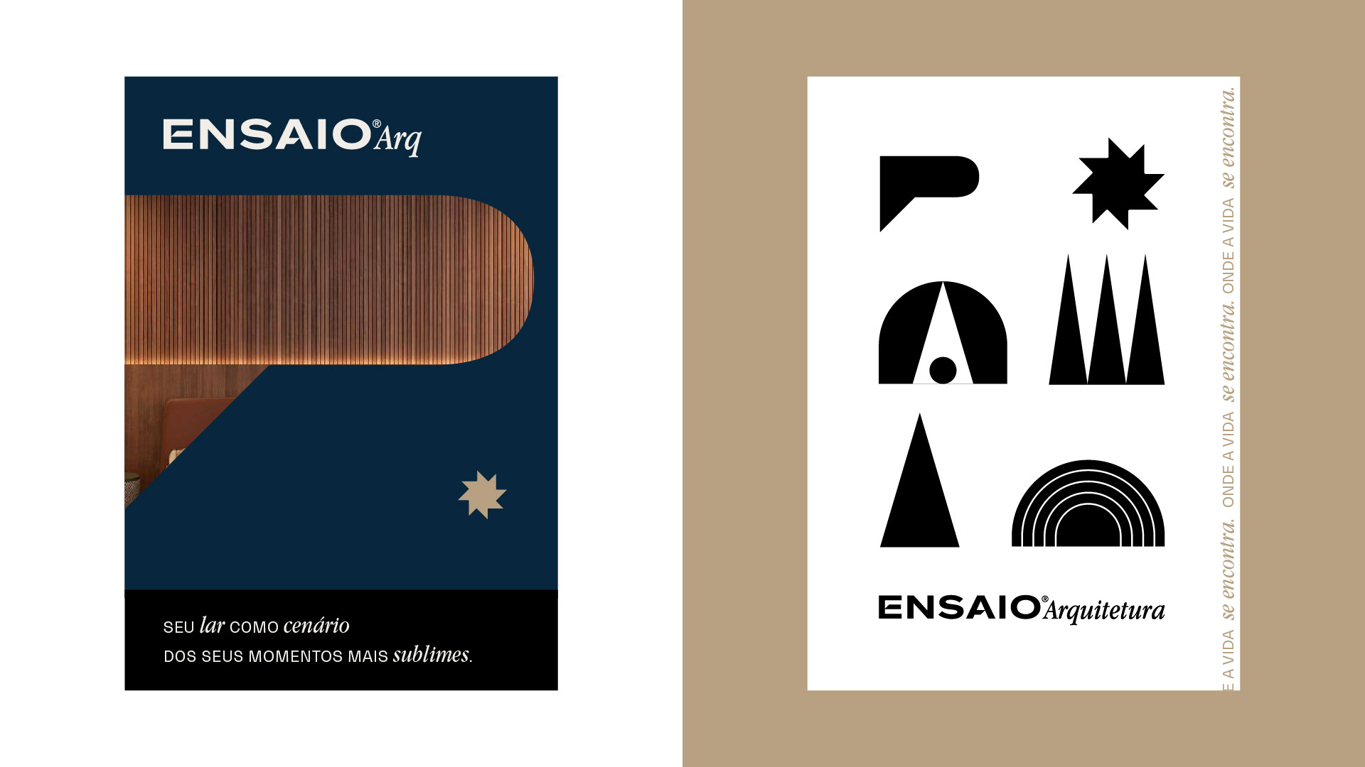 The naming process led us to choose "Ensaio" (Rehearsal) as the firm's new name. "Ensaio" represents the most intense stage of an artistic experience, whether in music or theater. It can also refer to the idea of developing a deep reflection on a specific theme. This all connects directly to the brand's evolution, especially when we defined the tagline: "Onde a vida se encontra" (Where life finds itself).